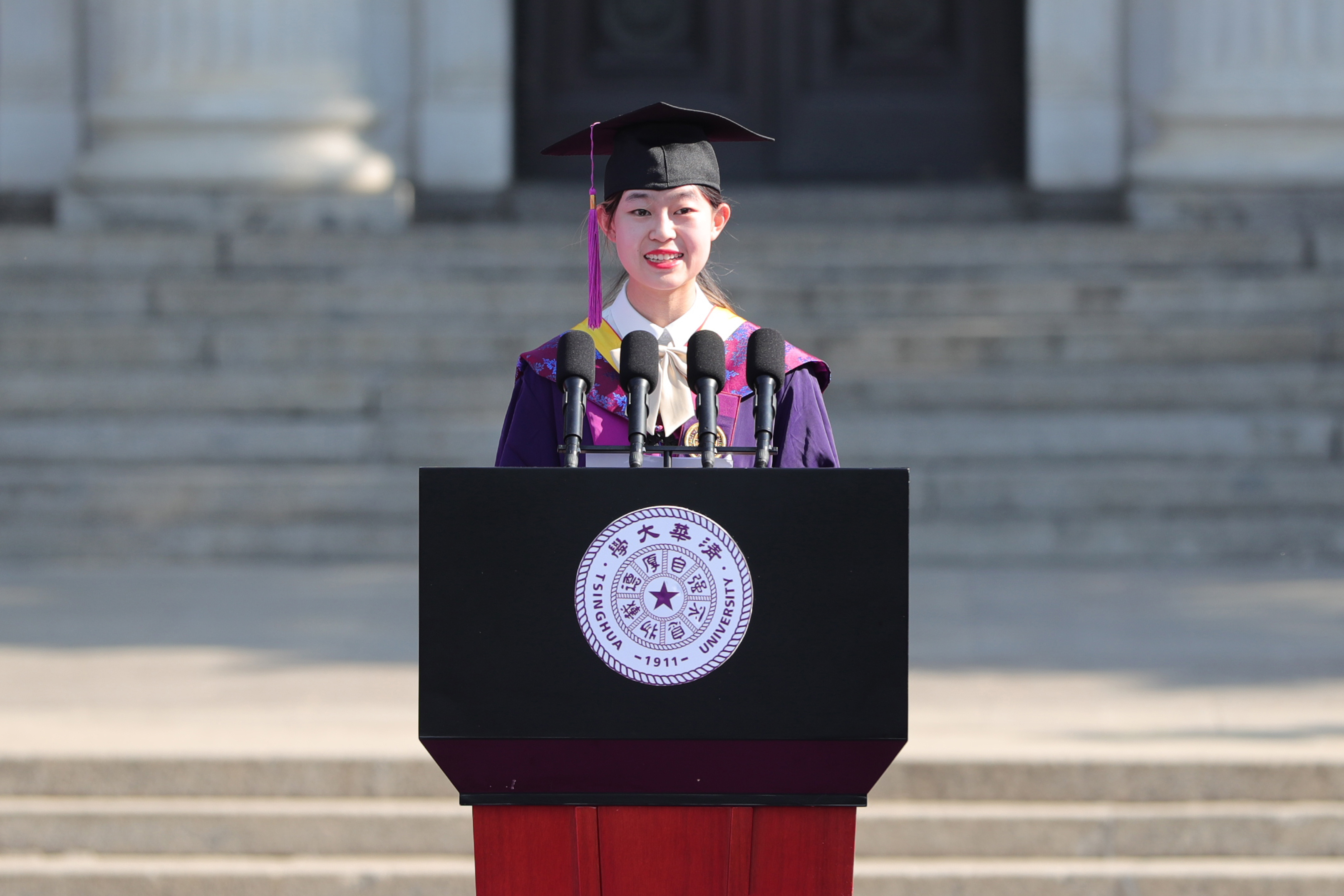Bai Yuzhuo, who graduated from the Department of Computer Science and Technology, delivered a commencement speech on behalf of the undergraduate students of the class of 2022. She reviewed her time at Tsinghua and said that exploration should be one’s life-long pursuit.
