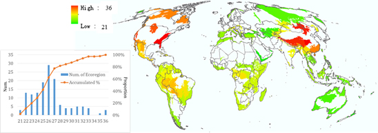 Figure 1. Counts of land cover paper with study area within Global 200 ecoregions.