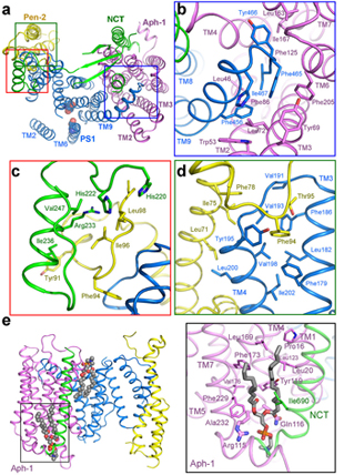 (Figure 3. Assembly interfaces among the four components of g-secretase in the transmembrane region)