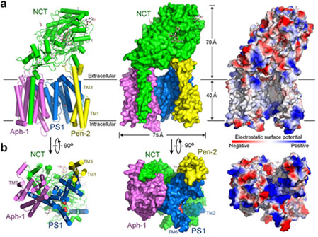 September, 2014: the Shi Lab reported the 1.95- angstrom crystal structure of the extracellular domain (ECD) of a Nicastrin homolog. Nicastrin is responsible for substrate recruitment for γ-secretase. Based on this structure, they were able to build the homologous model of human Nicastrin ECD, which facilitated domain assignment of the 20 transmembrane helices observed in the previous EM map (Xie et al, PNAS, 2014).