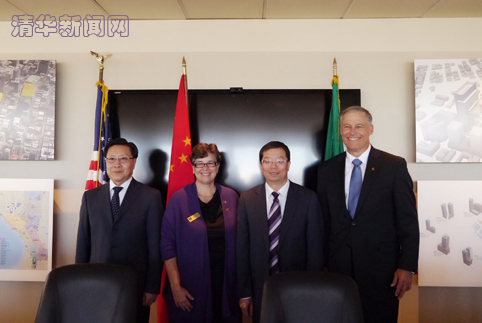 Three months after a groundbreaking partnership between Tsinghua University, the University of Washington and the Microsoft Corporation on the Global Innovation Exchange Institute (GIX), which will pioneer new models of global teaching and learning, the state of Washington once again witnessed a more comprehensive and profound cooperation - Tsinghua University, together with Sichuan province in China, are collaborating with the University of Washington and Washington state on “Climate-Smart/ Low-Carbon Cities” 2+2 Cooperation, a novel multilateral international cooperation model between universities and districts, which to the fullest extent integrates the resources of the four parties. This model will drive forward relevant scientific research and industrial development, and promote the implementation of the “Climate-Smart/ Low-Carbon Cities Initiative” between China and the United States. It will also facilitate the deepening of reform and opening up, as well as the transformation of economic development in central and western areas in China. The cooperation model of “2+2” advances the partnership between universities and districts, which is also the first profound international cooperation of its kind ever held in China.