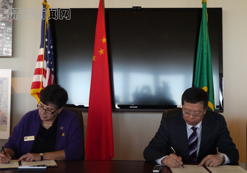 A memorandum of understanding, called "2+2 MOU," was signed between Tsinghua University and the University of Washington, as well as Sichuan province in China and Washington state in the U.S. in Seattle on September 22nd.