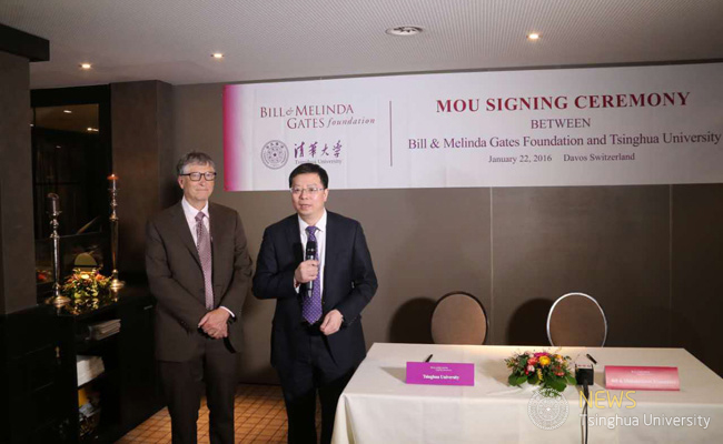 At a meeting in Davos, Switzerland on January 22nd, Qiu Yong, President of Tsinghua University, and Bill Gates, Co-chair of the Bill & Melinda Gates Foundation (BMGF), agreed to co-found the Global Health Drug Discovery Institute (GHDDI) in Beijing, China, and signed a memorandum of understanding.