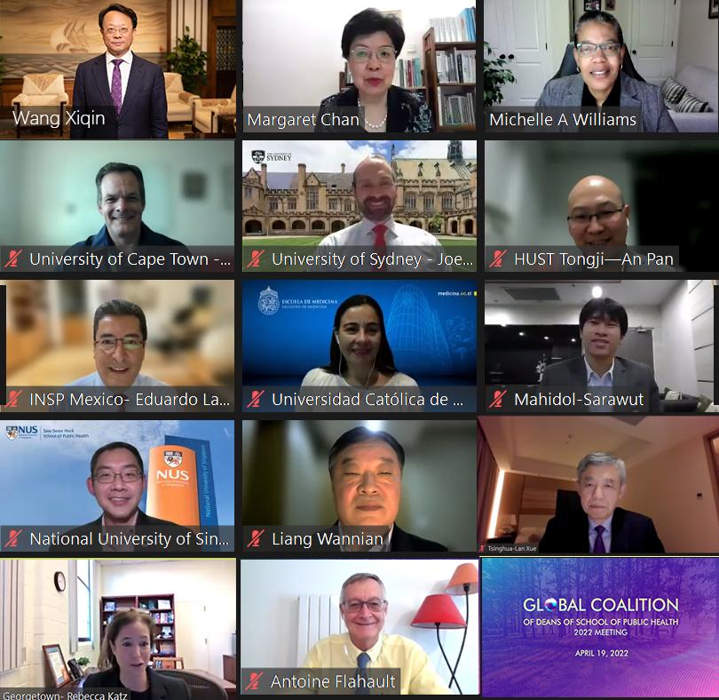 On the eve of the 111th anniversary of Tsinghua University, the Global Coalition of Deans of Schools of Public Health 2022 Meeting was hosted by Tsinghua Vanke School of Public Heatlh (VSPH) on 19 April. Over 400 scholars, faculty members and students in the field of public health attended the meeting online.