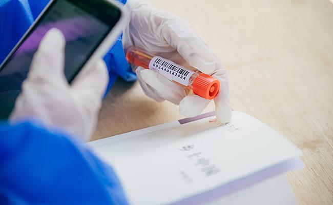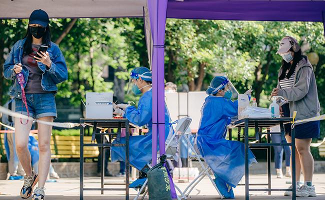 Volunteers register the personal information of the students taking nucleic acid tests. [Photo/Zhang Jiaqi]