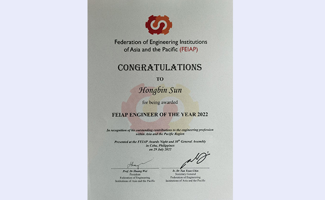 ​Professor Sun Hongbin wins FEIAP Engineer of the Year 2022