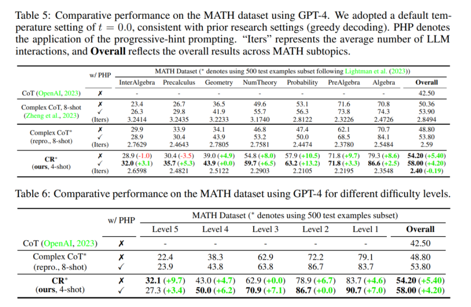 This framework has been tested on several datasets, including FOLIO wiki and AutoTNLI for logical inference, Game of 24 for arithmetic reasoning, and the MATH dataset for complex mathematical problems. The results show that CR framework consistently surpassed CoT and CoT-SC with a performance margin spanning up to 8.42% on FOLIO wiki and achieved a relative improvement of 9.3% in the framework of the AutoTNLI dataset. It also outperformed ToT by a large margin of 24% in the Game of 24 and realized a substantial relative improvement of 43% in the most difficult problems, classified as Level 5, on the MATH dataset.