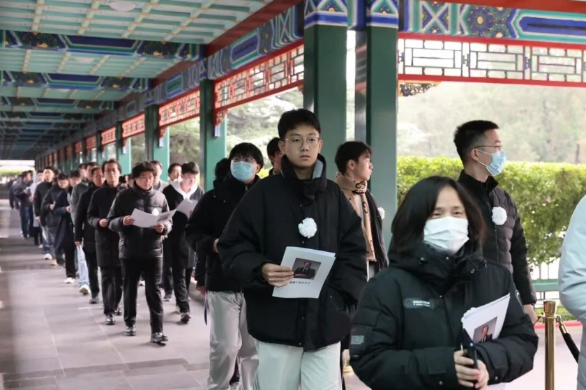 Many members of the Tsinghua community attended on their own initiative, forming a long, quiet line that extended well beyond the memorial hall. From gray-haired senior alumni to freshmen embarking on their academic journeys, mourners stood in silence, their expressions solemn, touched by grief.