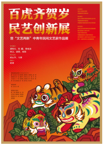The exhibition, titled "Hundreds of Tigers Celebrating the New Year Together: A Folk Art Innovation Exhibition" and "The 'Two New' of Literature and Art: An Exhibition of Artworks by Young and Middle-Aged Folk Artists," kicked off online on Jan. 29.