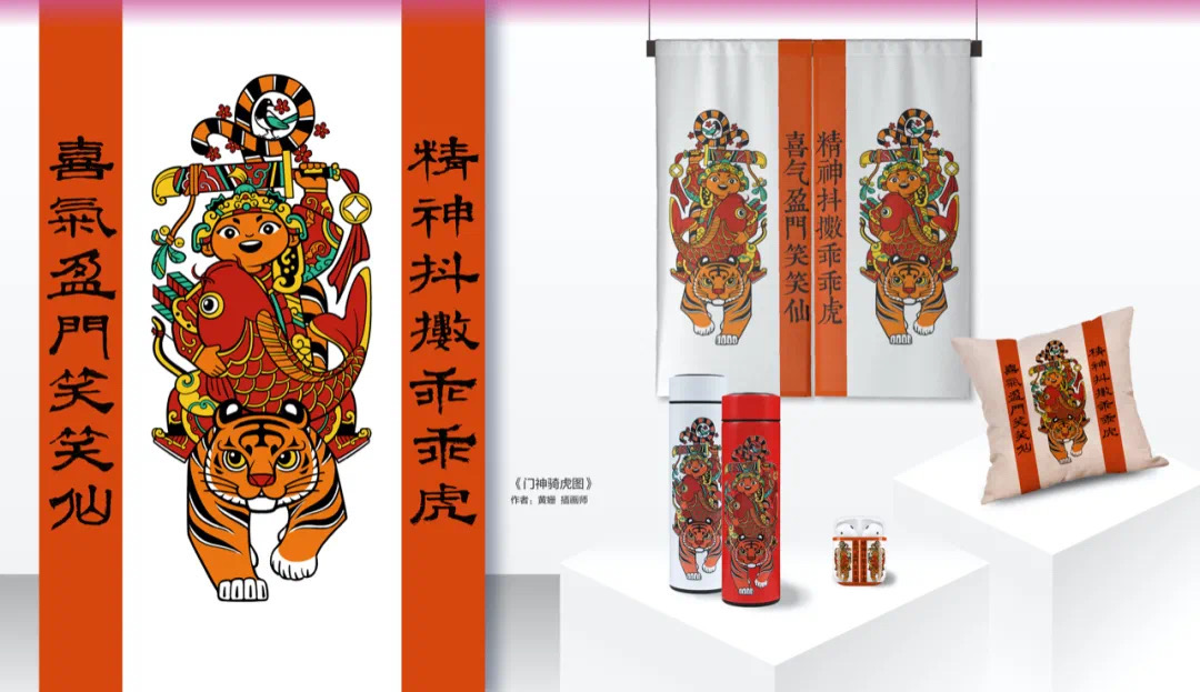 The fourth part showcases the excellent practical achievements of Tsinghua University's efforts to help the inheritance and innovation of New Year paintings. A series of new images of New Year paintings, zodiac tiger IP, and cultural derivatives are integrated with fashion and uses the daily life of people during Spring Festival as an application scenario. This activity intends to meet and enrich people's growing demand for a better life with a new visual language, creating a beautiful carrier for New Year paintings to better integrate into modern life.