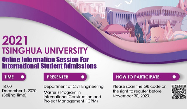 International Construction and Project Management (ICPM) is a leading M. Eng program in Tsinghua University, which aims to broaden and deepen students' knowledge of contemporary issues in the leadership, strategic management, and delivery of international projects to provide value to stakeholders and society as a whole. The unique characteristic of this program is to expose students to a new way of thinking, and to create awareness of how Chinese organizations operate, manage, and delivery projects in the fast-changing world. The program is practice-oriented. Students will be taught to think creatively, to be innovative with new ideas, and to use tools and techniques for effective management of projects. Students will be taught about problem solving, leadership, and the exploitation of technology. This is a unique opportunity to embrace Chinese culture and thinking and to engage in the world of international construction.