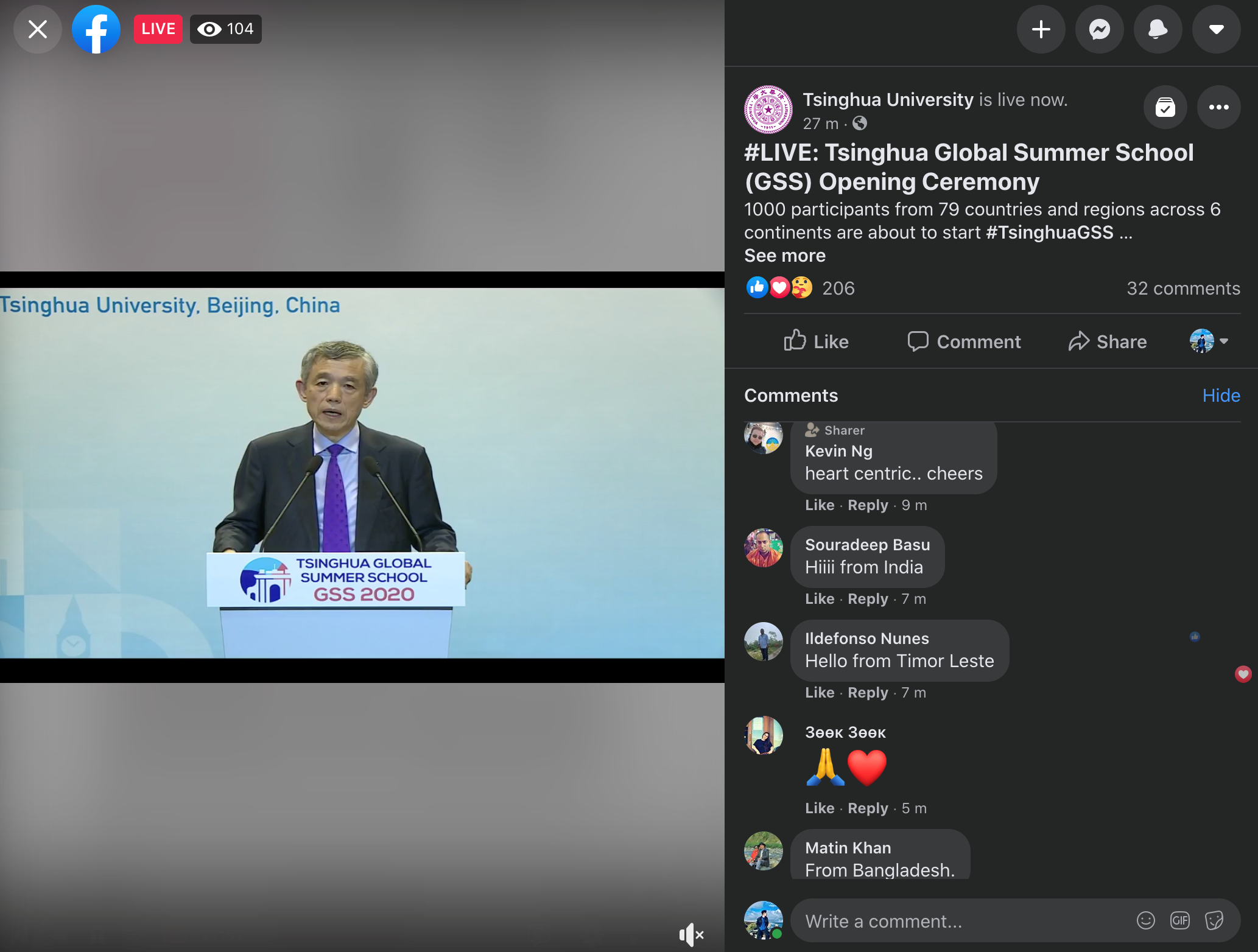 On July 20, 2020, at 9am Beijing time, the Tsinghua University 2020 Global Summer School officially began. Over 1000 students from 79 countries and regions around the world gathered online to attend the Global Summer School opening ceremony.