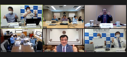 会议由东京工业大学副校长水本哲弥主持。副校长们听取了协会秘书处报告过去一年的协会活动,讨论了五所学校的科研及学生教育项目合作、次年学生工作坊等相关活动安排、与其他大学联盟合作事宜,在线续签了协会合作协议。与会嘉宾集体发布面向协会成员学校学生的联合声明,亚洲科技前沿大学协会将持续不断地为学生提供成长和开拓的机会,鼓励师生们保持全球间合作并进,在后疫情时代,通过不懈努力去探索改善人类生存环境的创新之路。