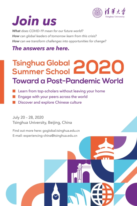 Tsinghua Global Summer School (GSS) 2020, Toward a Post-Pandemic World, is going to be held from July 20 to 28, 2020. It offers students a unique interdisciplinary platform to be immersed and inspired.