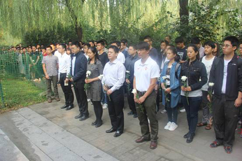 全体师生代表默哀,并依次走到英烈纪念碑前鞠躬、献上白菊,寄托哀思。