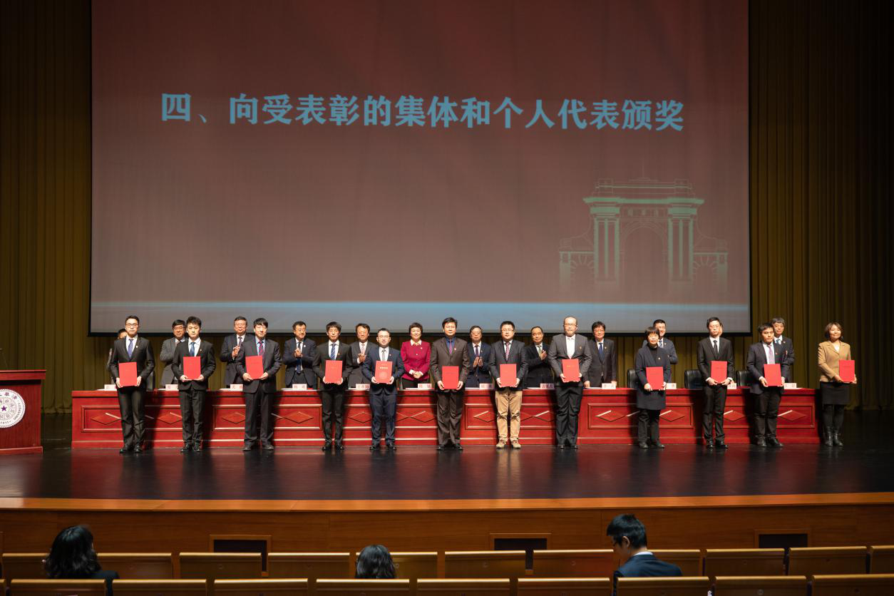 校领导为受表彰的集体和个人代表颁奖