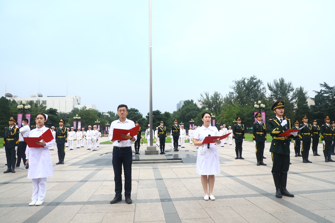 师生与医务工作者代表深情朗诵《清晨,国旗从这里升起》