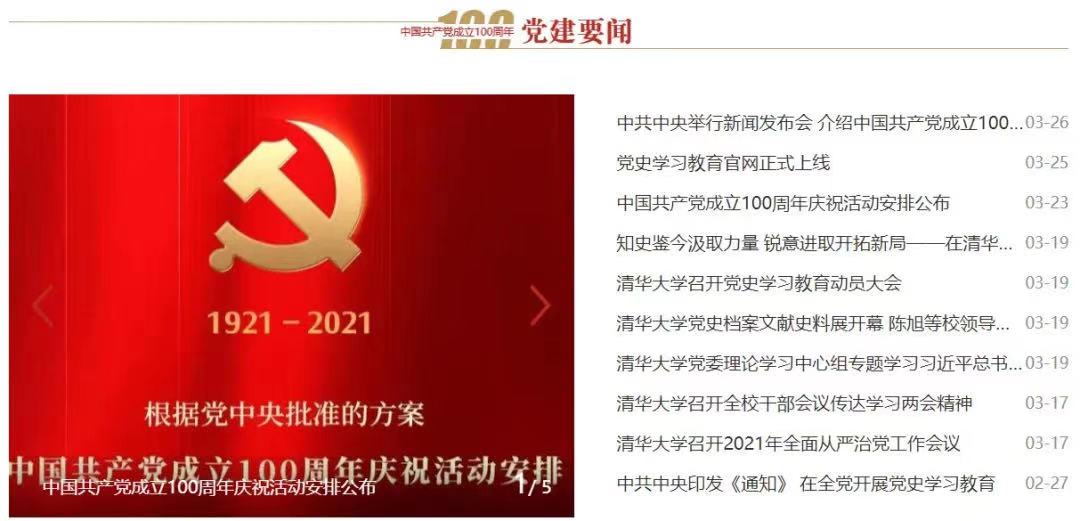 “清华党组织建立95周年”集中展现清华党组织的光荣历史、清华革命传统、清华红色文化以及纪念清华党组织建立95周年的相关活动等,并积极选树和宣传师生校友中的先进典型;“理论文丛”旨在为全校师生推荐提供深度的理论文章浏览阅读;“党史资料”提供丰富便利的党史学习参考资料及相关多媒体资源等;“红色影像”则专门提供各类有关党史学习教育的慕课、微慕课和党史党建方面的专题片、微视频等;“党员之声”主要交流展示各院系各单位党员师生进行党史学习的心得体会、经验成果等。
