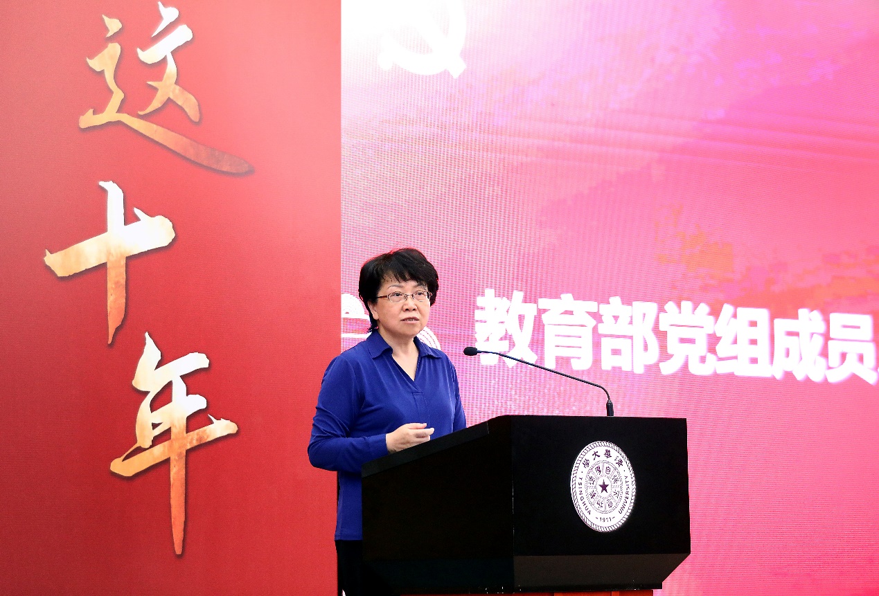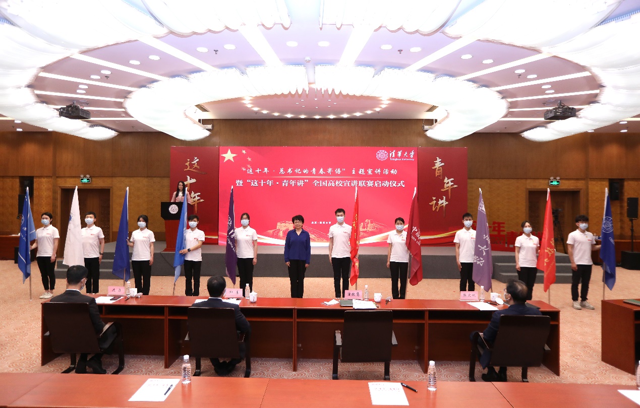 翁铁慧为“这十年·青年讲”全国高校宣讲联赛授旗,各赛区主办高校共同启动宣讲联赛。