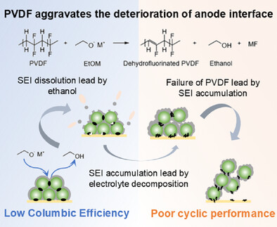 图3.粘结剂的脱氟化氢过程对钾离子电池石墨负极容量衰减的影响机制