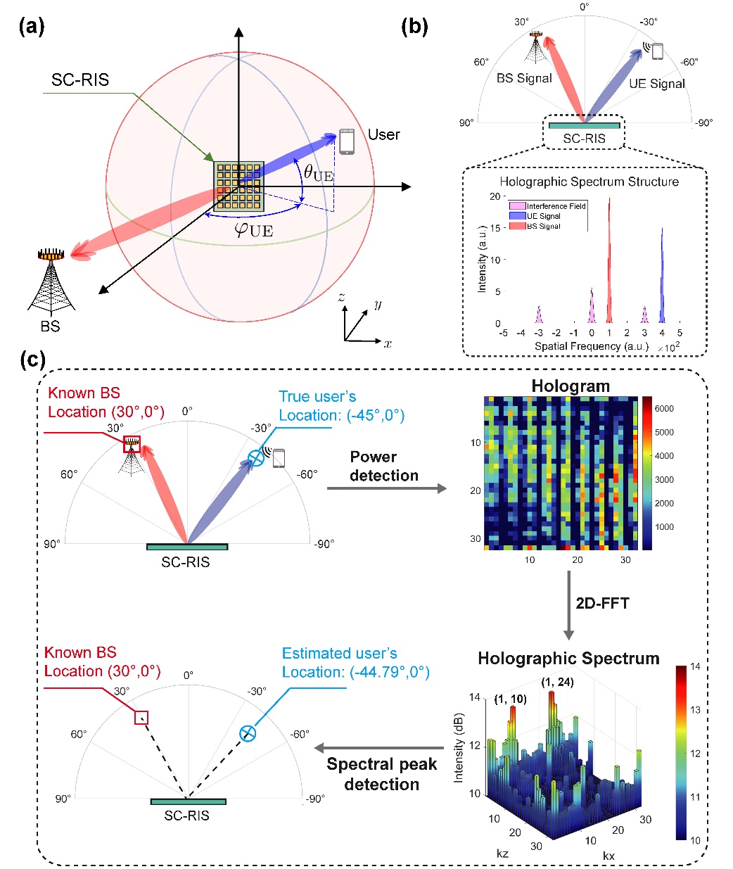 该研究针对RIS受基站控制而无法独立自主工作这一瓶颈问题,创新性地引入了光学中全息干涉的思想,通过在RIS单元上集成微波功率计,构成SC-RIS这一新的硬件结构。SC-RIS能够自主检测RIS表面的电磁干涉全息图,并利用全息定位算法完成用户定位,基于此可进行自主波束赋形,最终实现了脱离基站控制的自主控制。该研究工作也为RIS的设计提供了新的思路,即RIS的信道状态信息获取与电磁调控可以由RIS本身自主完成,从而有望使RIS成为无线通信环境中独立的智能体,在无线网络中自主感知无线环境的变化并实时做出响应,以独立完成通信、感知等多重任务。