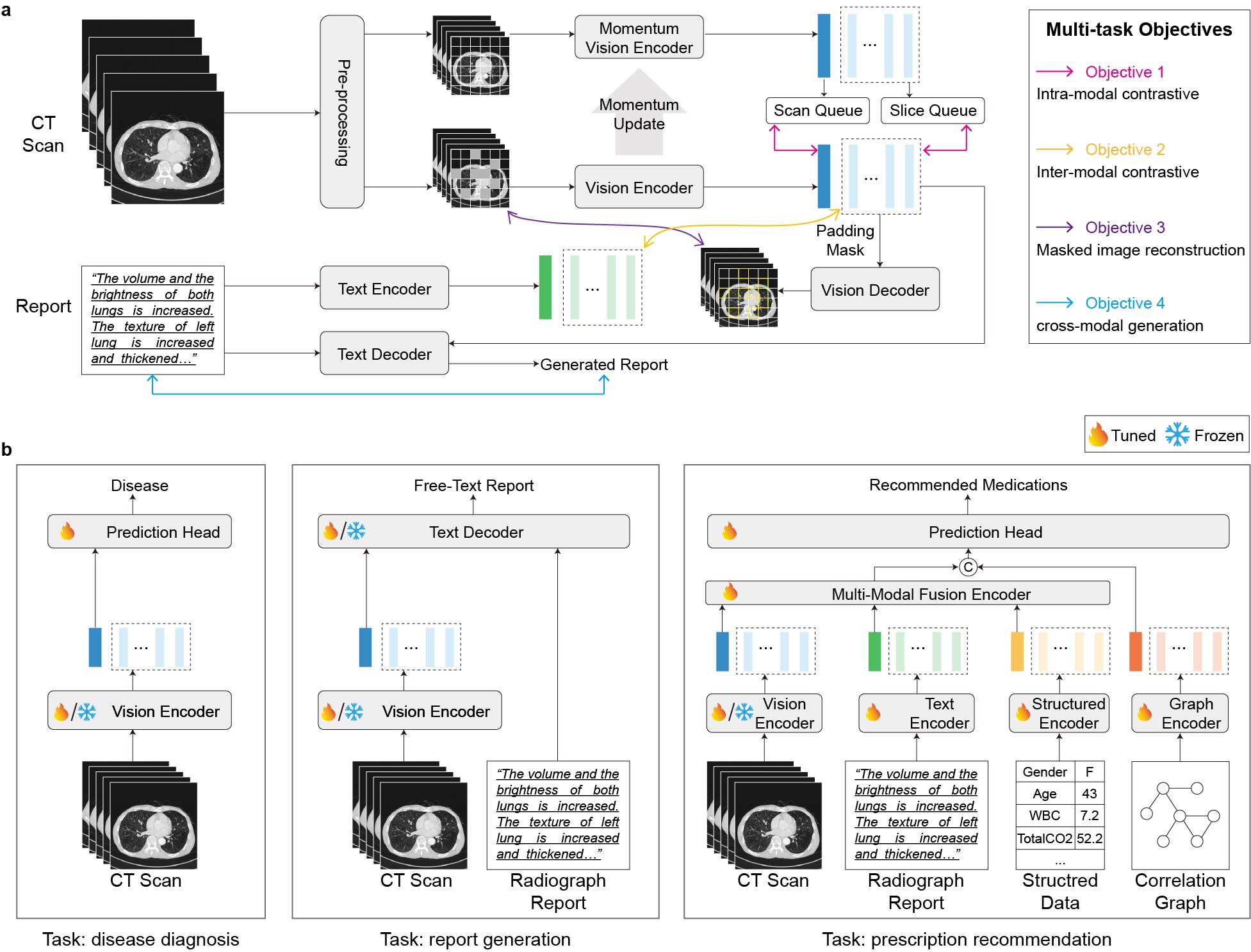 图2.MedMPT多模态自监督预训练框架与多种临床任务微调策略