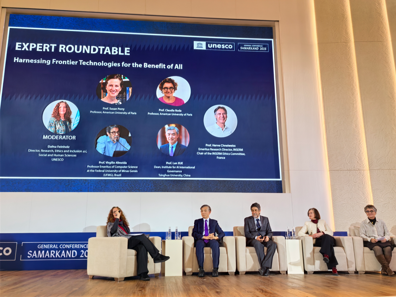 颁奖典礼后,在“运用前沿科技,造福全人类”圆桌研讨会上,与会嘉宾就人工智能伦理影响及其在国家与地区层面的体系重构路径进行深入探讨。