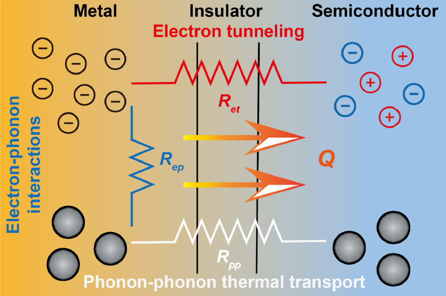 相关成果以“电子隧穿提高金属-绝缘体-半导体结界面热导(Electron Tunneling Enhances Thermal Conductance through Metal-Insulator-Semiconductor Junctions)”为题,于11月13日发表于《物理评论快报》(Physical Review Letters)。