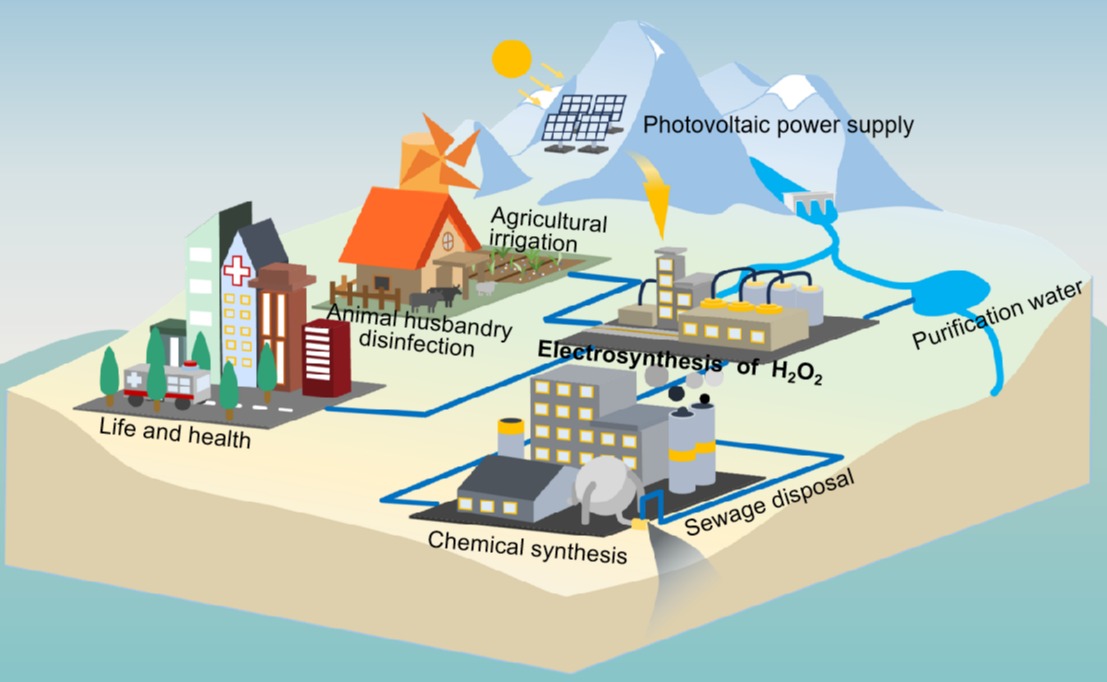 清华新闻网12月2日电 化工行业碳排放占我国工业碳排放的近20%,其低碳转型亟需颠覆性技术。在“双碳”目标下,以可再生能源驱动化工生产的绿电化工已成为重要发展方向。其中,过氧化氢电合成技术利用可再生电力,将水和空气直接转化为过氧化氢,具有反应条件温和、绿电适应性强、产品纯度高、应用场景丰富等优势,有望替代传统能源和废料密集型的蒽醌工艺,成为绿电化工的示范路径。但该技术的发展长期以来受限于催化材料、电极界面和系统集成等多重挑战。
