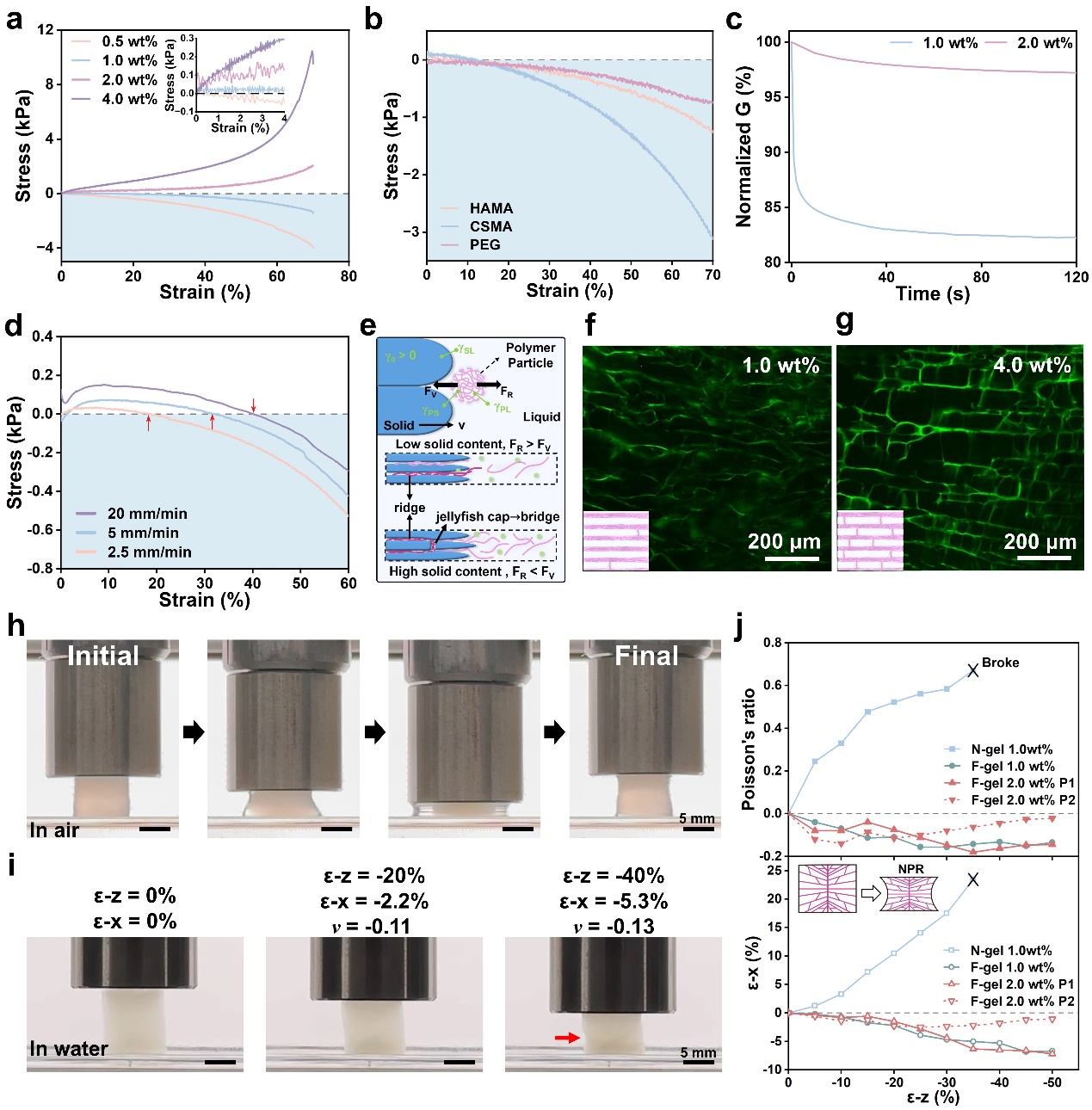 图3.负应力水凝胶结构与力学的可编程调节