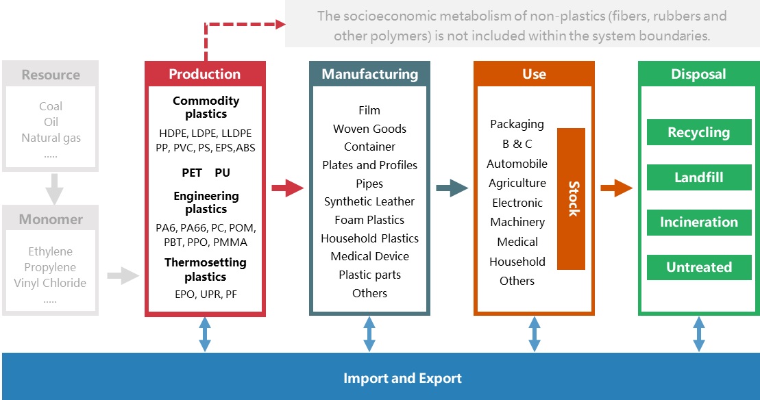 图1.中国20种塑料动态物质流模型框架