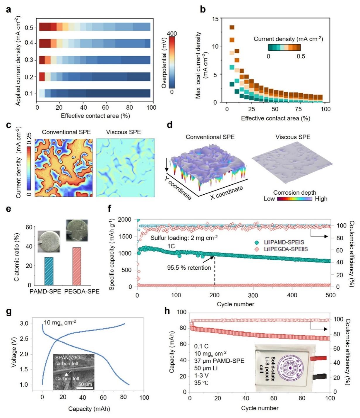 图2.锂–SPE界面接触状态对锂负极腐蚀行为及锂–硫电池电化学性能的影响