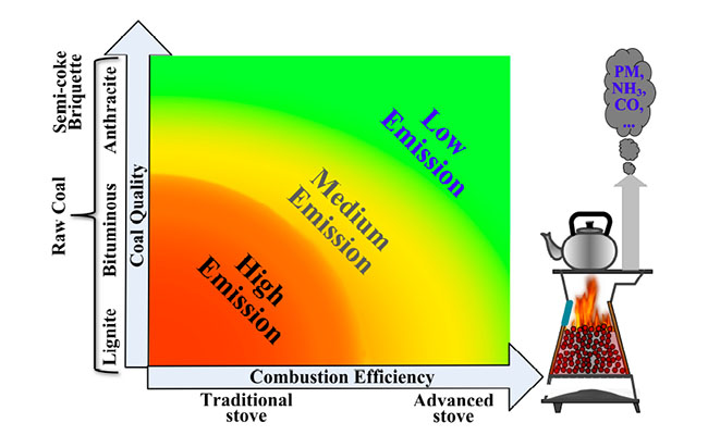 当前我国PM2.5污染形势严峻,民用散煤燃烧是主要贡献源之一,如何经济有效地治理民用燃煤导致的污染一直是一个困扰各级政府的难题,特别是在京津冀地区。蒋靖坤等组成的研究团队提出了在民用部门用挥发份含量低的半焦型煤替代原煤的方案,基于对比实验和可行性分析,全面替代后可以分别带来一次PM2.5、黑碳和有机碳92%、98%和91%的减排,并对一氧化碳有一定的减排效果。而通过提高民用炉具的燃烧效率不但可以节能,还可以降低二次颗粒物形成的重要气态前体物—氨气的排放。这一系列研究结果将有益于解决当前民用燃煤导致的大气颗粒物污染问题。