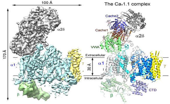 揭示真核电压门控钙离子通道复合物Cav1.1的三维结构