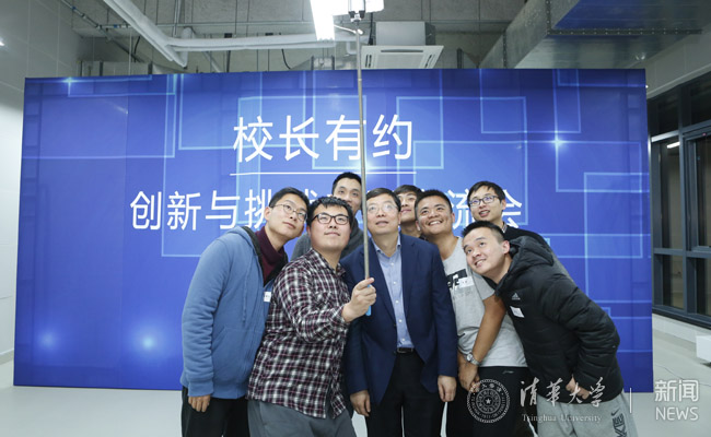 邱勇校长在“校长有约”活动上与清华超算团队队员自拍。