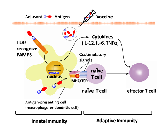 Toll样受体在先天免疫和获得性免疫中的作用,及TLR激活剂作为疫苗佐剂和抗肿瘤制剂的调控原理。