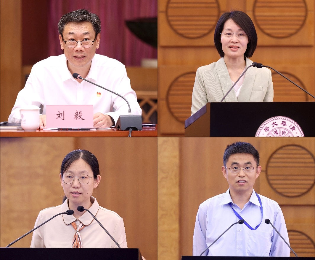 刘毅、李曼丽、杨帆、史作强(从左至右、从上至下)汇报通报相关事项