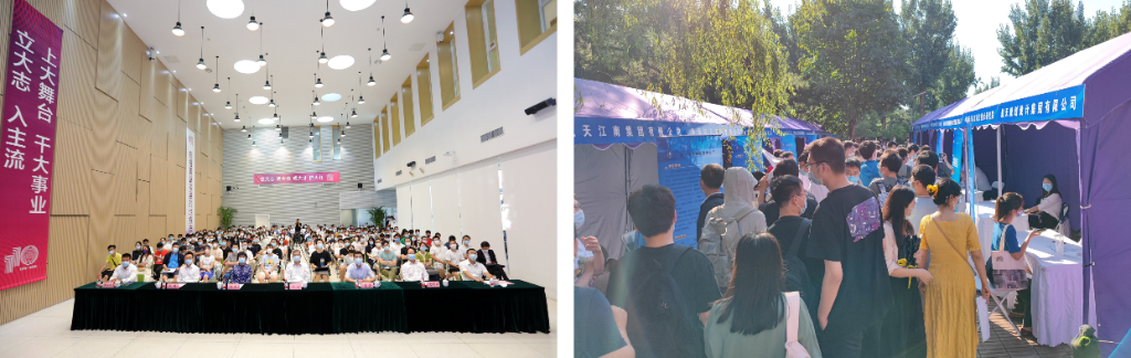 航天科工集团招聘宣讲会(左)、双选会现场