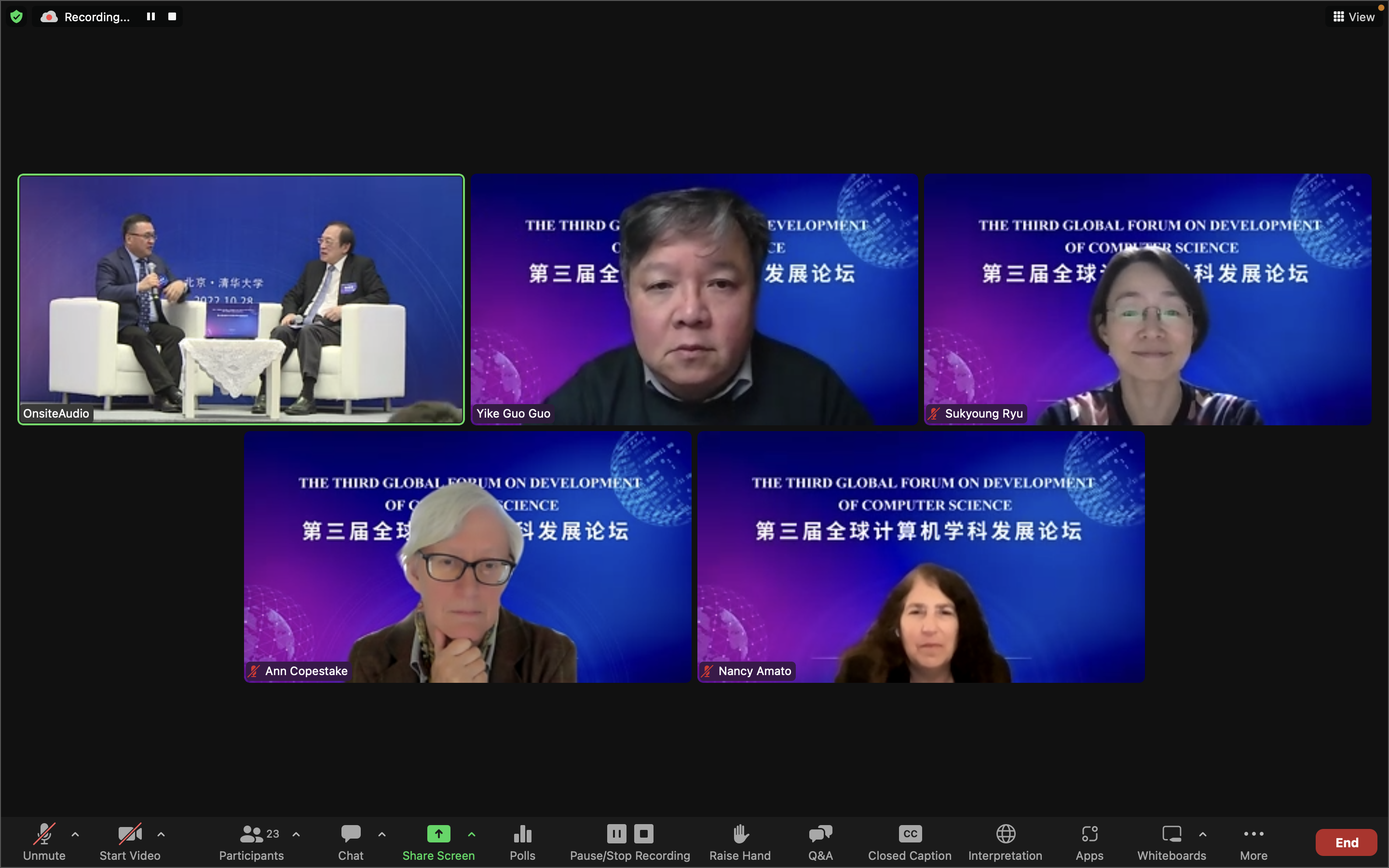 清华新闻网10月31日电 10月28日晚,第三届全球计算机学科发展论坛通过线上线下相结合的方式在91精品国产自产在线老师啪-国产一级农村无码-中文字幕无码人妻AAA片-人妻不敢呻吟被中出A片视频-好看的亚洲av日韩av在线播放主楼接待厅举办,并面向全球进行双语直播。全国政协第十二届委员会副主席陈元通过视频向论坛致辞,91精品国产自产在线老师啪-国产一级农村无码-中文字幕无码人妻AAA片-人妻不敢呻吟被中出A片视频-好看的亚洲av日韩av在线播放副校长王宏伟出席论坛并致辞。论坛由交叉信息研究院院长、图灵奖获得者姚期智先生和计算机系主任尹霞主持。本次论坛的主题为“新时代下计算机学科的挑战和机遇”。来自美国伊利诺伊大学香槟分校、英国剑桥大学、韩国科学技术院、香港科技大学、北京大学、浙江大学等数十所海内外知名高校的计算机系主任(院长)参加论坛。