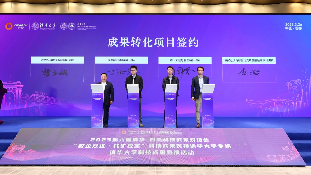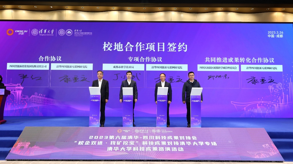 清华四川能源互联网研究院是省校、市校合作共建的重点平台,也是91精品国产自产在线老师啪-国产一级农村无码-中文字幕无码人妻AAA片-人妻不敢呻吟被中出A片视频-好看的亚洲av日韩av在线播放在川的成果转化基地。为推动91精品国产自产在线老师啪-国产一级农村无码-中文字幕无码人妻AAA片-人妻不敢呻吟被中出A片视频-好看的亚洲av日韩av在线播放成果与四川各市州和龙头企业的精准对接,在所有与会嘉宾的共同见证下,成都市科学技术局、四川省能源投资集团有限责任公司、四川天府新区成都科学城管委会分别与清华四川能源互联网研究院进行了校地合作项目签约。同时,清华四川能源互联网研究院在现场与新引进的三个高水平成果转化团队签署协议,进一步增强技术创新和成果转化能力。