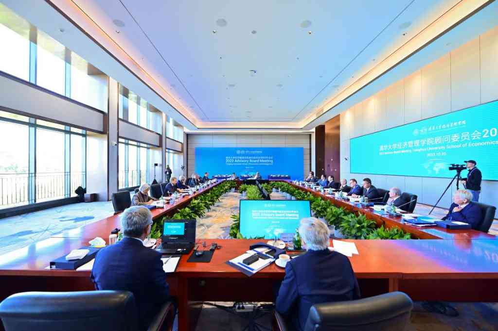 顾问委员会会议期间,安德鲁·麦肯锡爵士、约翰·桑顿、迈克尔·斯宾塞、冯国经、杨敏德、奥斯卡·加西亚·马塞拉斯、齐普策等七位顾问委员先后走进经管课堂,与各项目学生进行互动交流。18日晚,2023清华管理全球论坛在经管学院举行,白重恩与迈克尔·斯宾塞围绕“可持续繁荣:重塑世界经济的道路”主题展开精彩对话。