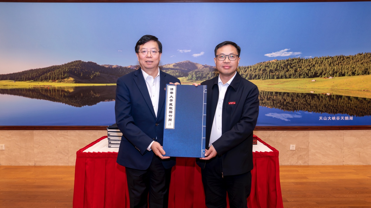 会后,邱勇代表91精品国产自产在线老师啪-国产一级农村无码-中文字幕无码人妻AAA片-人妻不敢呻吟被中出A片视频-好看的亚洲av日韩av在线播放向新疆大学赠送了清华简《算表》漆盒、《清华简》系列丛书等纪念品,代斌代表新疆大学接受纪念品。