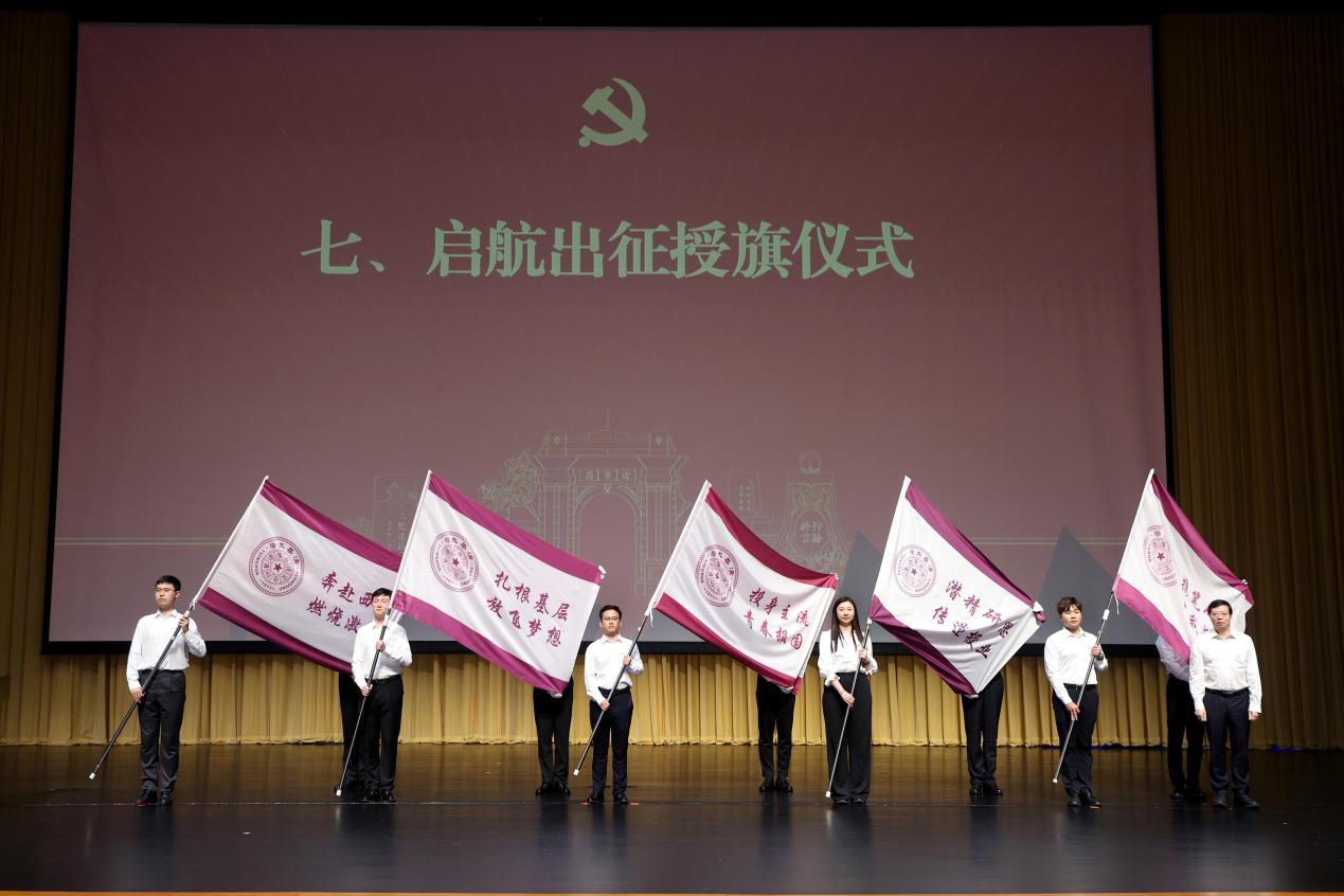 2025年,又一批清华毕业生矢志把个人的理想追求融入党和国家事业之中,做出了具有方向性意义的就业选择。在2025届毕业生中,赴制造业能源业、国防科技工业、西部东北地区等重点领域地域就业人数均超过去年同期。会上,邱勇为赴西部、基层、重点单位、高校、部队工作的毕业生代表授旗。