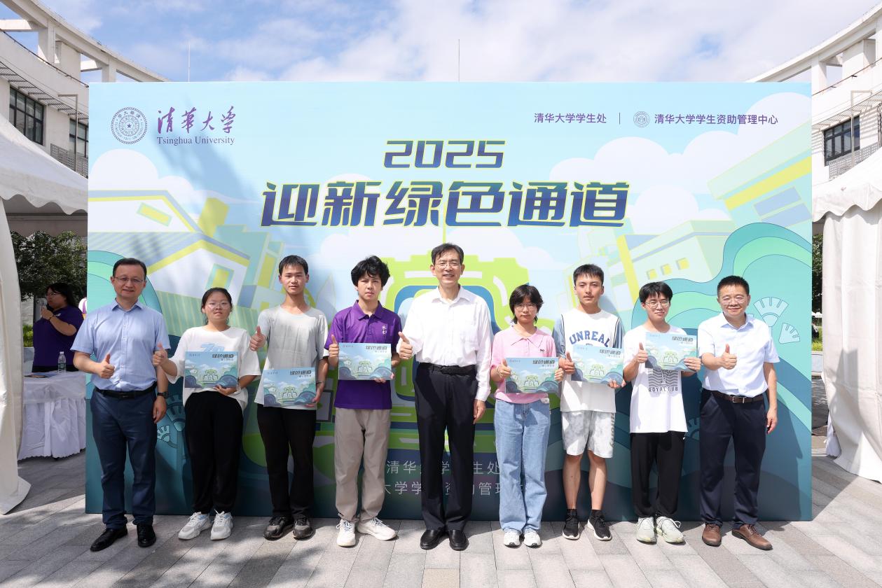 在学生服务中心(C楼)前的绿色通道,李路明看望受资助新生并赠送“爱心大礼包”。他仔细询问受资助新生们的情况,表示学校会充分支持和保障同学们在清华的学习成长,希望大家心怀家国理想,脚踏实地努力,在不懈奋斗中绽放青春光彩。