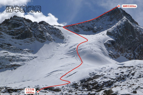 7月6日,队伍从北京出发,10日进山建立本营,11日运输物资并建立C1营地。经过一天的休整,13日,A组技术指导李兰,攀登队长涂江汇、徐小斌、丁旭、徐黎闽、沈治攀登至C1准备冲顶,B组在本营继续休整。14日,由于天气原因,A组未冲顶,在C1进行技术练习,同时B组队长胡文涛,队员刘宇航,罗逍,王高远,廖凌云,李卓婉,宋泓仪攀登至C1与A组会合,15日凌晨三点全队出发冲顶,上午7点37分全队登顶。