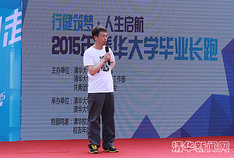 随后,校长助理、生命学院院长施一公为领跑方阵旗手田径一队滕海宁授旗。他鼓励同学们坚持锻炼,在离开清华园后继续保持体育运动习惯,争取为祖国健康工作五十年。