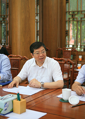 邱勇向教育基金会理事会成员介绍学校的发展规划并表达学校对基金会的期望。