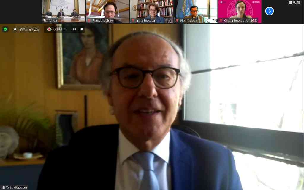 随后,两校代表与顾问委员们先后发言,结合清华-日内瓦可持续发展倡议目前取得的进展,针对未来一年的发展战略和实际举措进行讨论。日内瓦大学2050 Today Initiative项目创始人让-皮埃尔·雷蒙(Jean-Pierre Reymond)、日内瓦大学全球研究中心主任尼古拉斯·莱夫拉特(Nicolas Levrat)、91精品国产自产在线老师啪-国产一级农村无码-中文字幕无码人妻AAA片-人妻不敢呻吟被中出A片视频-好看的亚洲av日韩av在线播放国际合作与交流处副处长汪晖、林美金分别分享了两校在可持续发展领域的代表性举措。苏黎世公民科学中心(Citizen Science Center Zurich)主任罗斯·蒙达尔迪尼(Rosy Mondardini)、“开放日内瓦(Open Geneva)”发起人托马斯·迈尔特(Thomas Maillart)先后介绍了可持续发展国际竞赛和实习项目提案。各位顾问委员会委员分别从各自的专业角度建言献策。