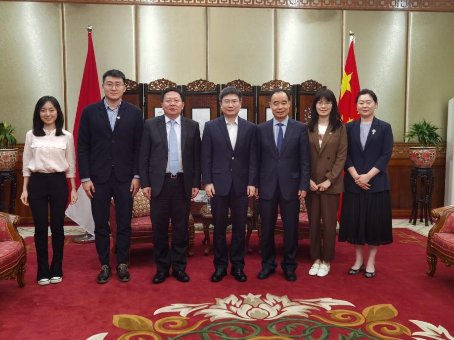 在印度尼西亚访问期间,吉俊民一行拜访了中华人民共和国驻印度尼西亚大使馆,与中国驻印尼使馆临时代办周侃公使就中印尼教育、文化交流等方面进行了交谈。