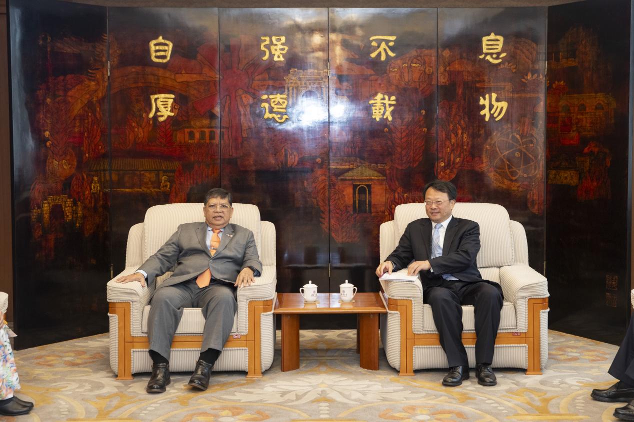 会见结束后,佐哈里·阿卜杜勒发表了题为“亚洲世纪:东盟与中国”的主旨演讲。他提到,中马两国于1974年建交,马来西亚是东盟各国中第一个与中国正式建交的国家。建交后,两国在各领域的交流与合作持续深化、硕果累累,互帮互助的友好关系得到了进一步巩固和发展。“亚洲世纪”不仅关乎经济繁荣,更关乎社会包容、区域合作和可持续发展。他呼吁东盟各国进一步加强合作与共享、携手为建设一个更加包容、可持续、和平的世界而共同努力。
